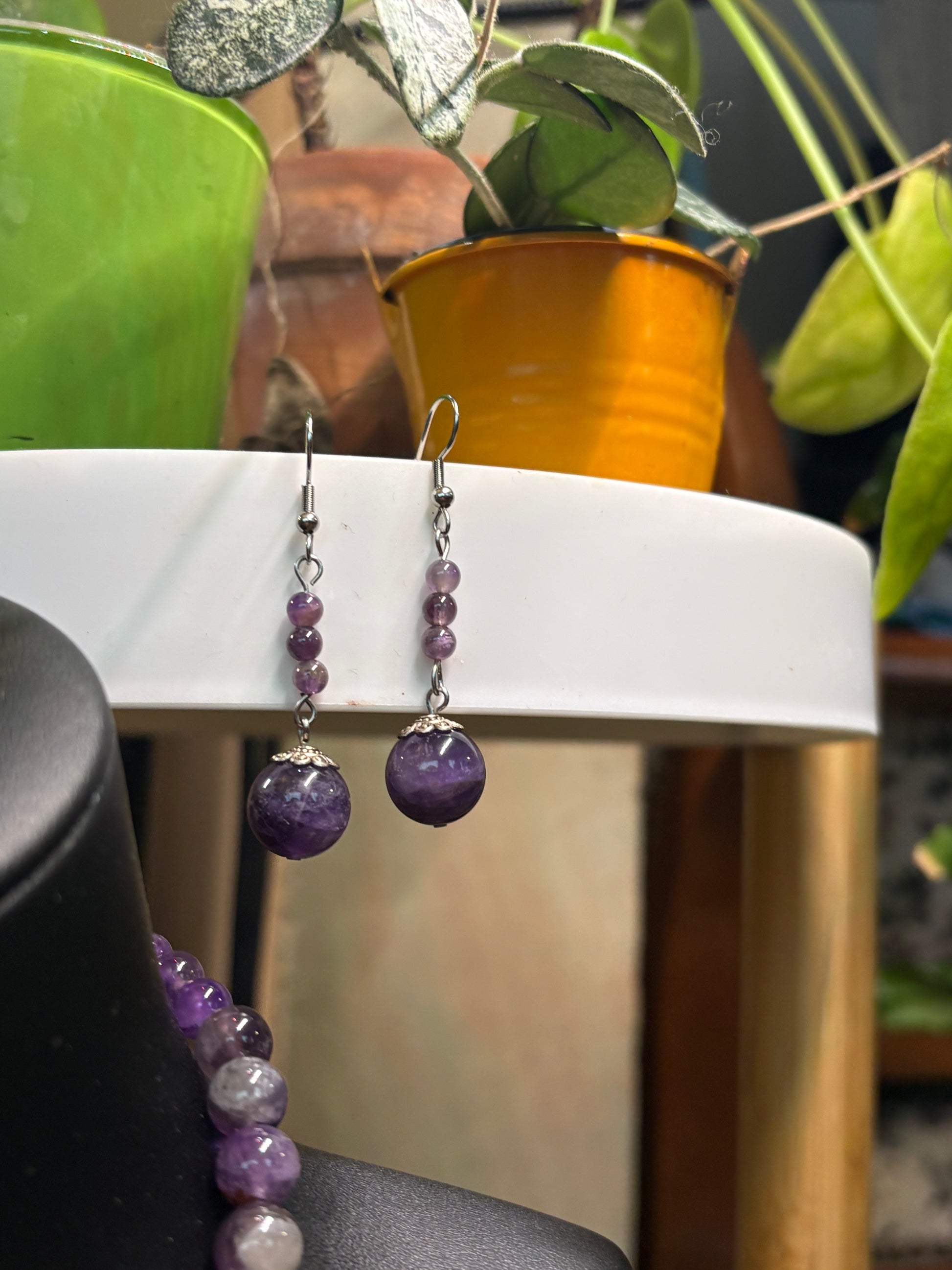 Bijoux fait main par mes soins, en acier inoxydable et pierre semis précieuse (améthyste)